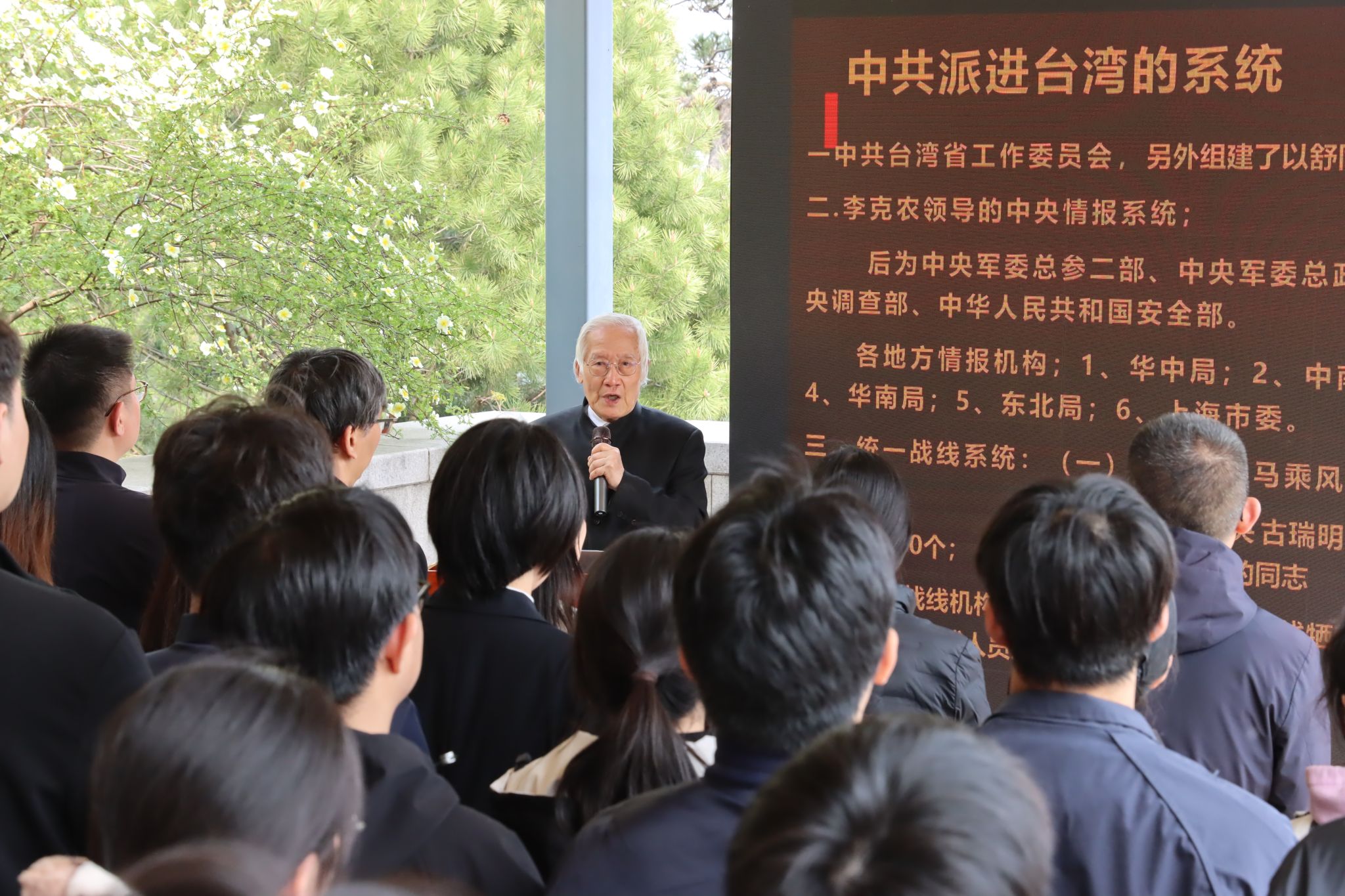 无名英雄广场松柏苍翠、静穆庄严,镌刻着英烈姓名的石壁静静矗立,诉说着那段隐姓埋名、以身许国的峥嵘岁月。活动特邀刘光典烈士后代、中央党校刘玉平教授亲临现场,为师生深情讲述隐蔽战线英雄事迹。刘玉平教授结合烈士事迹强调,无名英烈以生命践行使命、以忠诚守护家国,彰显了不计名利、一心为公的崇高追求,为新时代青年树立和践行正确政绩观提供了鲜活教材,引导大家以家国为重、以奉献为荣,不慕虚名、实干担当。刘光典烈士在国家召唤之际毅然赴险,受命潜入台湾执行绝密情报任务,为解放台湾搜集传递关键军情。地下组织遭叛徒破坏后,他在台南深山潜隐四年,面对绝境坚守信仰,面对酷刑严守秘密,用生命诠释了共产党人的忠诚与担当,最终为祖国统一事业壮烈牺牲。刘玉平教授以亲历者的视角,追忆烈士生平、缅怀先辈风骨,嘱托青年学子铭记历史使命,以英烈为榜样,勤学笃行、勇担重任,为国家安全与民族复兴贡献青春力量。